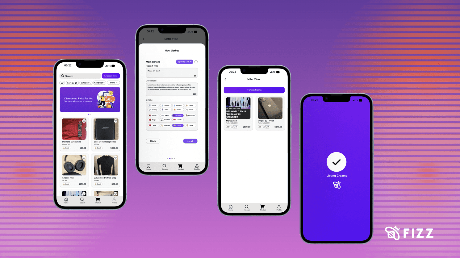 Reimagining the Fizz Marketplace to help users discover and confidently sell everyday items within their college communities.