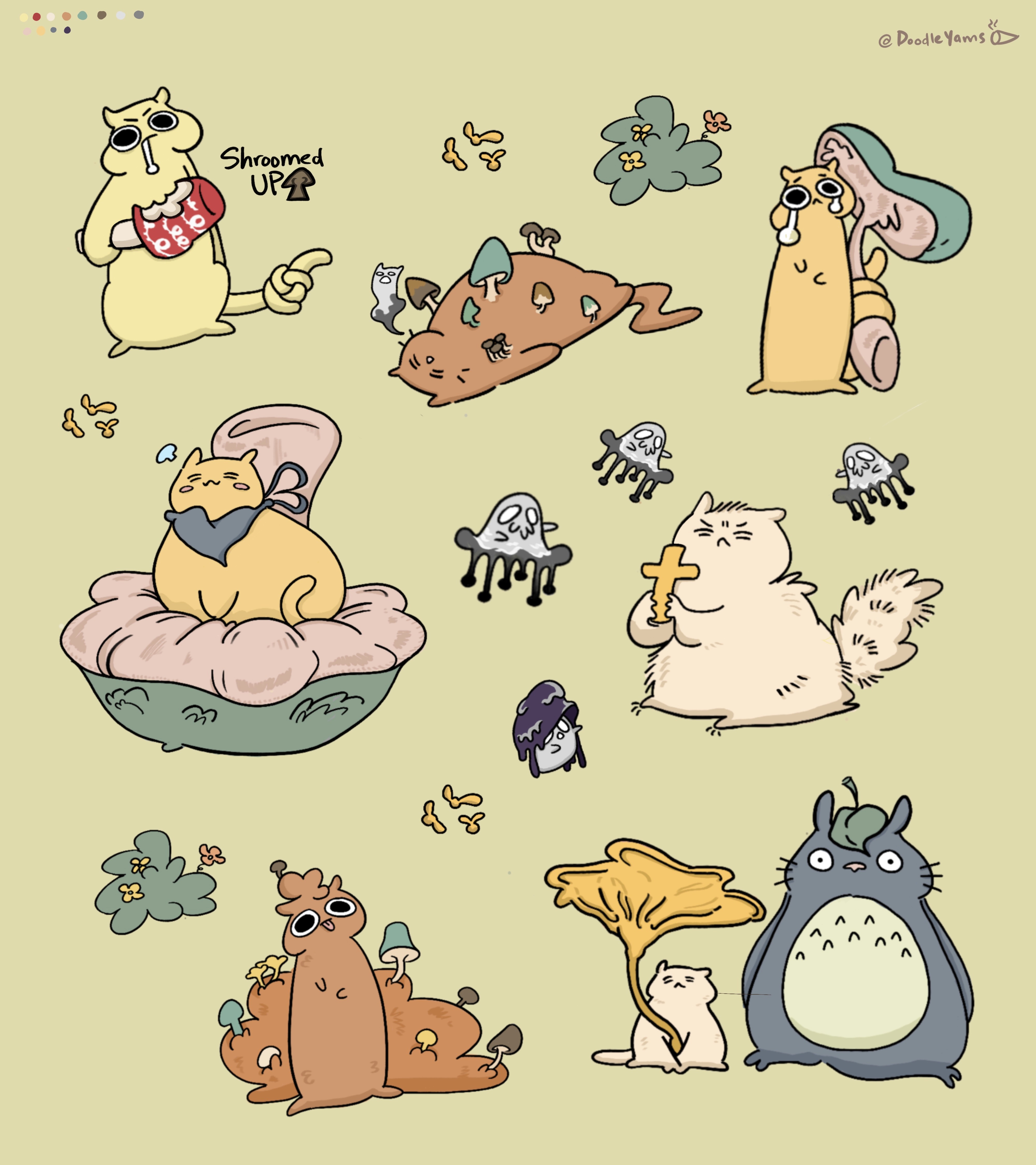 Cat Sticker Panel 2: Mushrooms