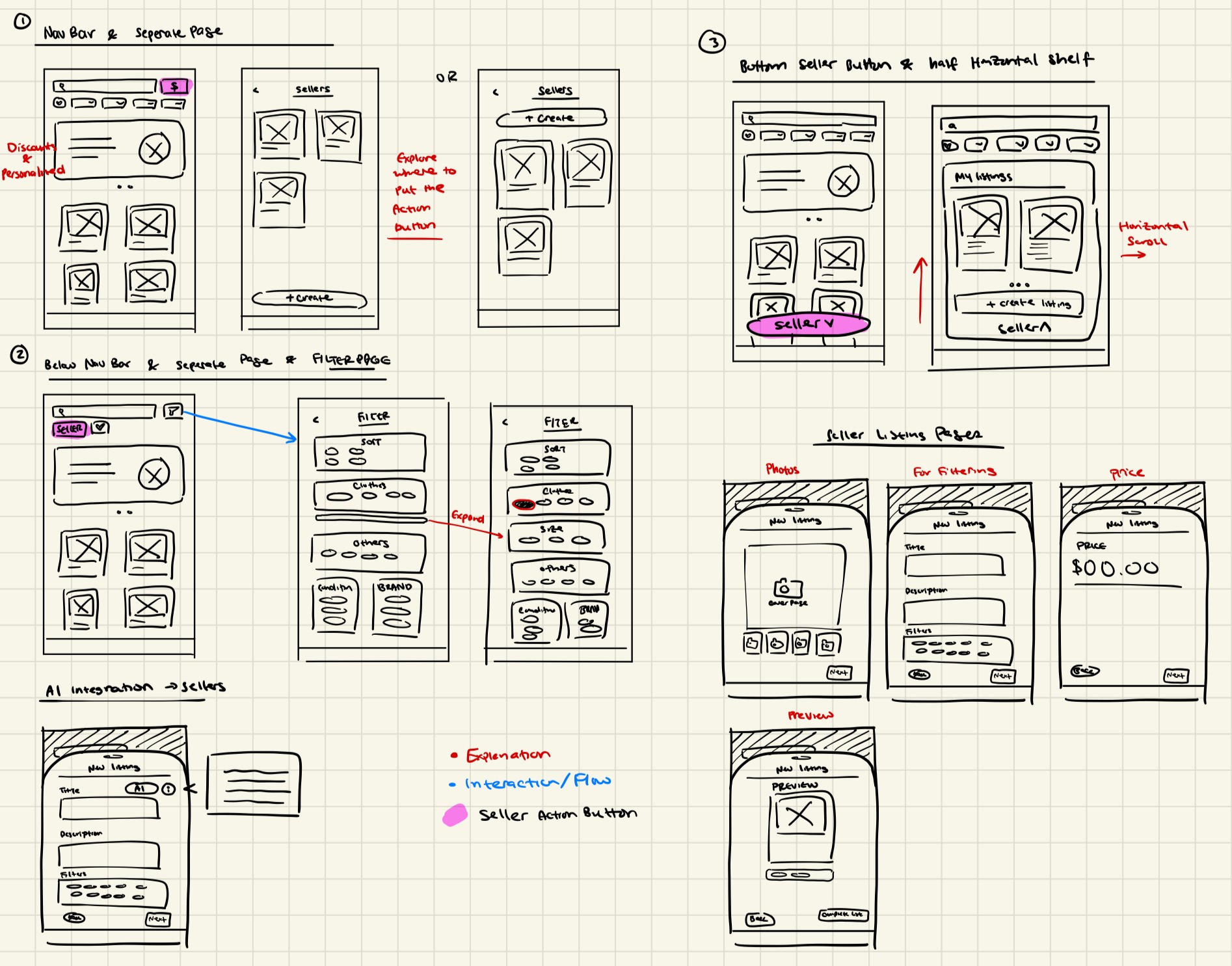 New sketches to improve and simplify the original user flow.